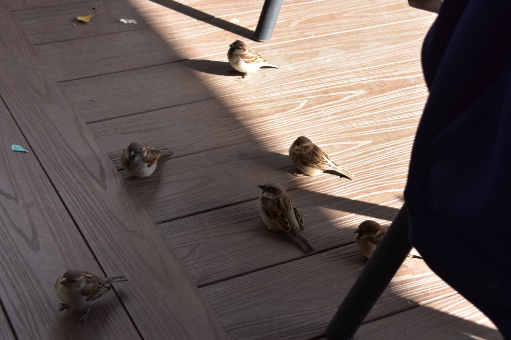 It was super windy and the palm trees along the promenade were almost bent in half from the force, but it wasn’t really cold. We were sheltered a bit under an awning and it was quite pleasant sitting and watching all of the little birds come around and scrounge for scraps.