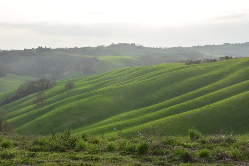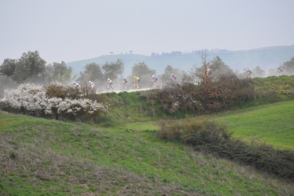 We decided to get to Asciano nice and early so headed there on Thursday to spend the night in the local aire, before going to our favourite place to watch Strade Bianche. It’s partway along the section named for Fabian Cancellero – or maybe just a bit past it.