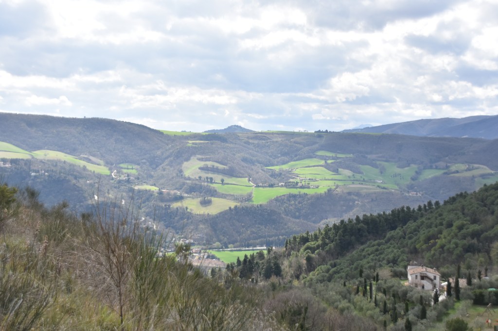 We left after two nights for Fossombrone to find the route for stage 5 of Tirreno Adriatico. Miss GPS took us on a route we hadn’t been on before, and it was just beautiful – lots of lovely little towns and wide green valleys. Even the road surfaces weren’t too bad!