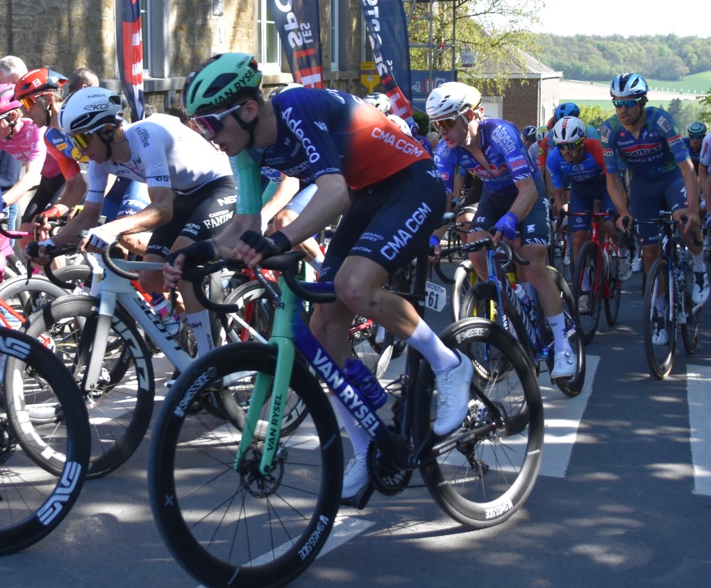 The entire group came and went in less than a minute. We weren’t able to watch the whole rest of the race on tv as the coverage didn’t start until almost 3:00, although we did get to see the last 80 km or so. Remco won in a thrilling sprint against last year’s winner Danish rider Mattias Skjelmose.