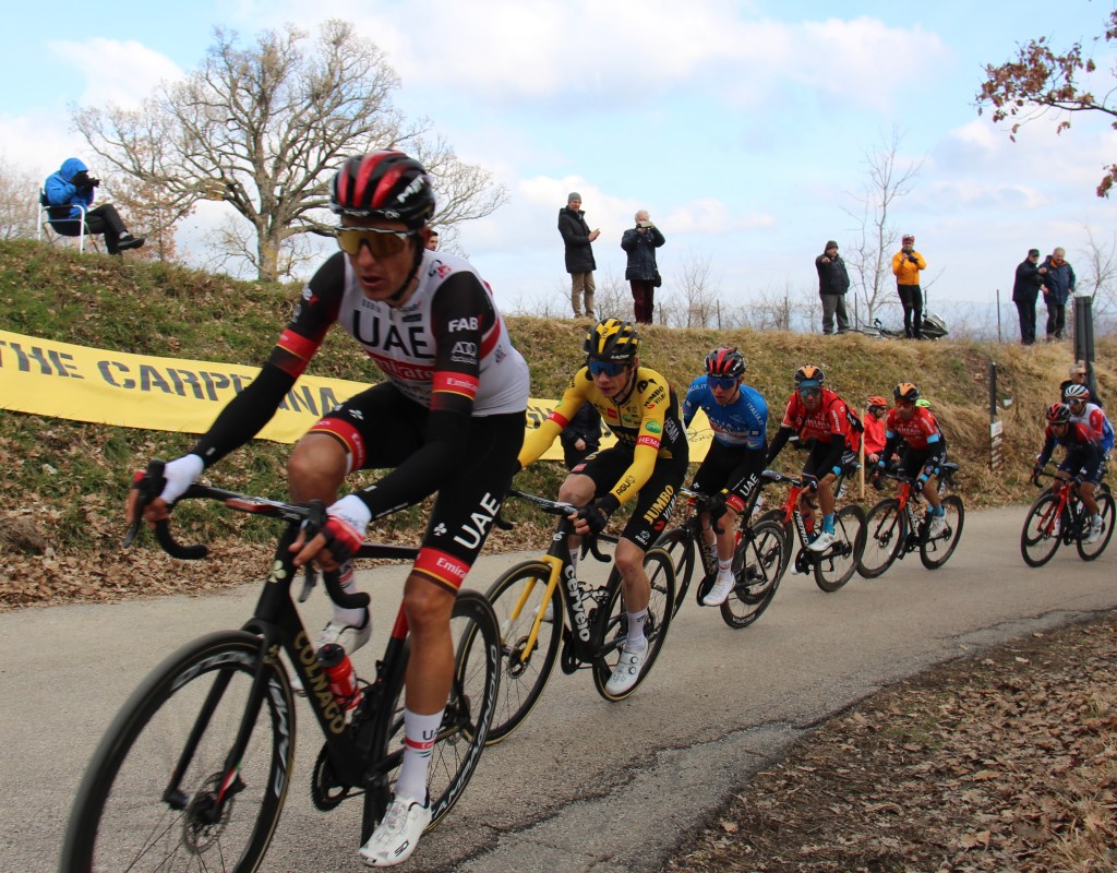A half hour after the first arrival they made their second pass – this time a slightly larger breakaway, including, of course, Pogacar.