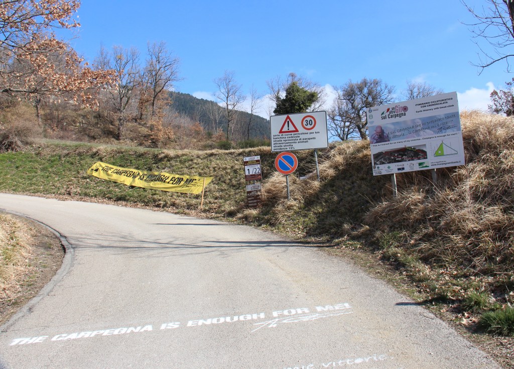 We parked on the side of the road behind three other campervans and had another cup of tea. I took a couple of short walks – it’s another very beautiful area. At the foot of the steep part of the climb are several homages to Marco Pantani – he didn’t grow up in Carpegna, but he trained on the climb many times.