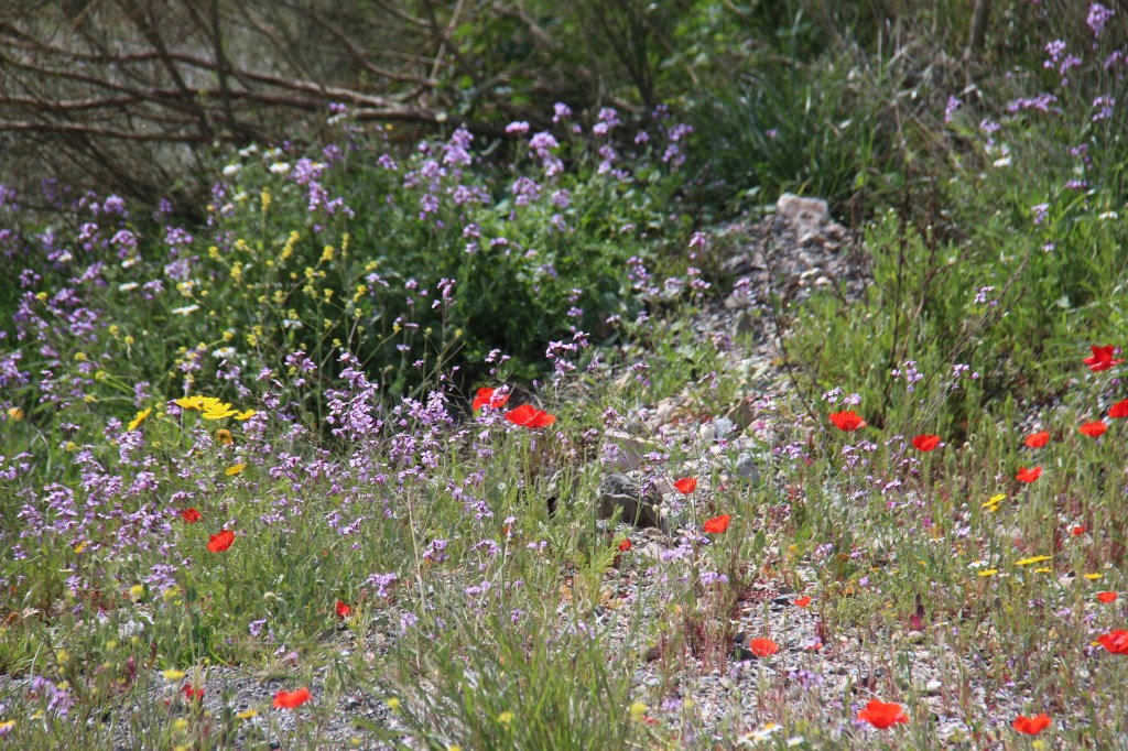 Another day we drove up near the new house and while Colin sat with the dogs outside the restaurant and had a coffee I finally – for the first time this year! – got on my bike. I rode up the nearest rambla and pedaled leisurely along below the house and north almost to the sanctuary.