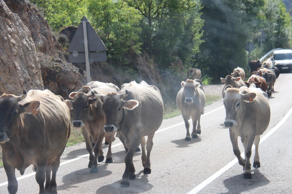 One day we took the short drive to San Emiliano for coffee – on the way back to the ‘main’ road we had to stop for a small herd of cows that were walking up the road towards us on their way from one field to another.