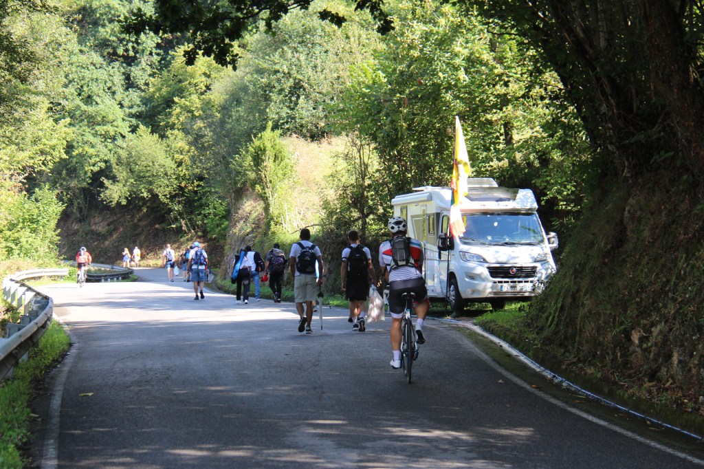 The descent of the fans after the race was the largest I’ve ever seen – it took almost two hours for all of the cyclists, walkers, cars and motos to get past us on their way down. They kind of came in waves – a bunch of cyclists, then a bunch of walkers, then a lot of motos and some buses and campervans – then it started again. We stayed put rather than trying to fight the traffic and get nowhere fast.