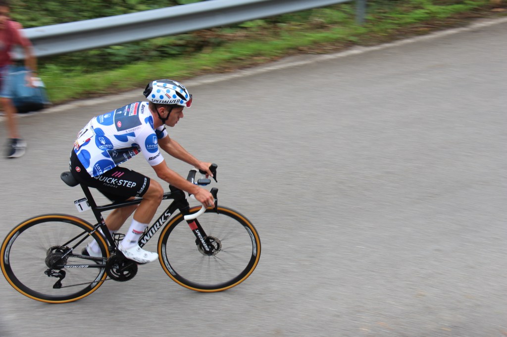 Unfortunately Remco lost a ton of time on the Tourmalet a few days ago so is out of GC contention but he still had something to prove – he was the first racer to pass us…