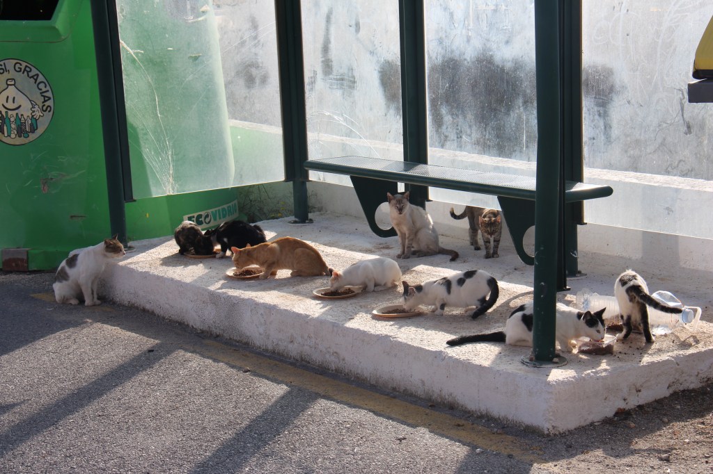 I always drive with a bag of cat food in the car to feed the strays in Las Pocicas – one time I stopped there were at least 13 of the poor little things.