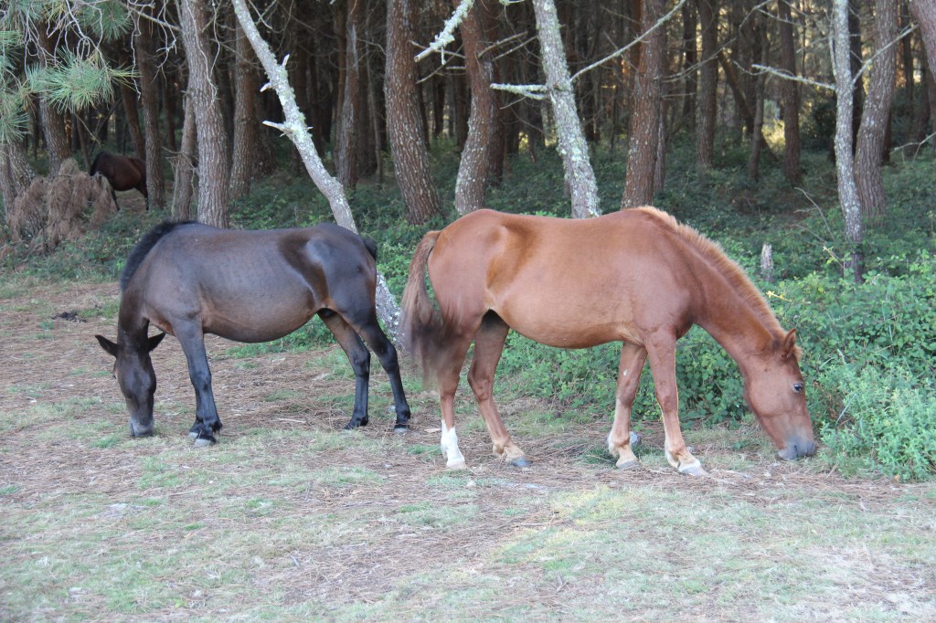 The area has large amounts of open land upon which both cows and horses roam freely so drivers must be aware – several of the horses came around in the evening to browse near the campervan.