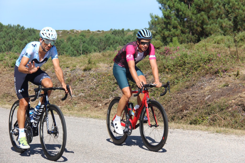 There were quite a few nice wide places to pull over so we got a bit ahead of the team so I could hop out and take some photos. They were very happy to see us and Enrique Mas posed for a photo with a team-mate as they rode past.