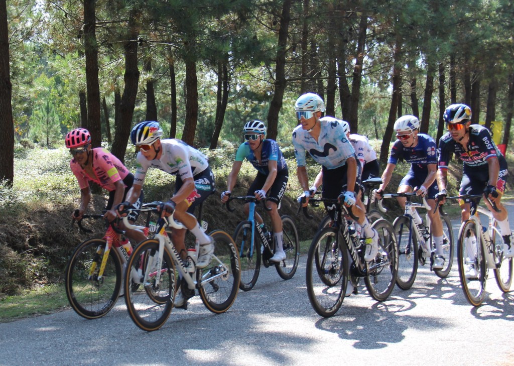 After a bit more to-and-fro we were once again heading north along the coast when we saw a large group of riders making a turn inland – today is the rest day and it was the entire Movistar team doing a recon of the final climb and then down into the finish. The road was not marked and if we’d timed it differently we might still be circling the area!