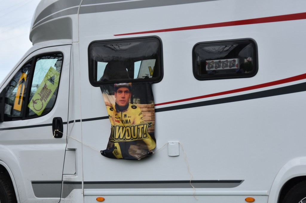 The Tour of Flanders – or La Ronde (Ronde van Vlaanderen) – is this year 278 km long and is the second ‘Monument’ of the year, and the first time it passed us was just after 1:30…