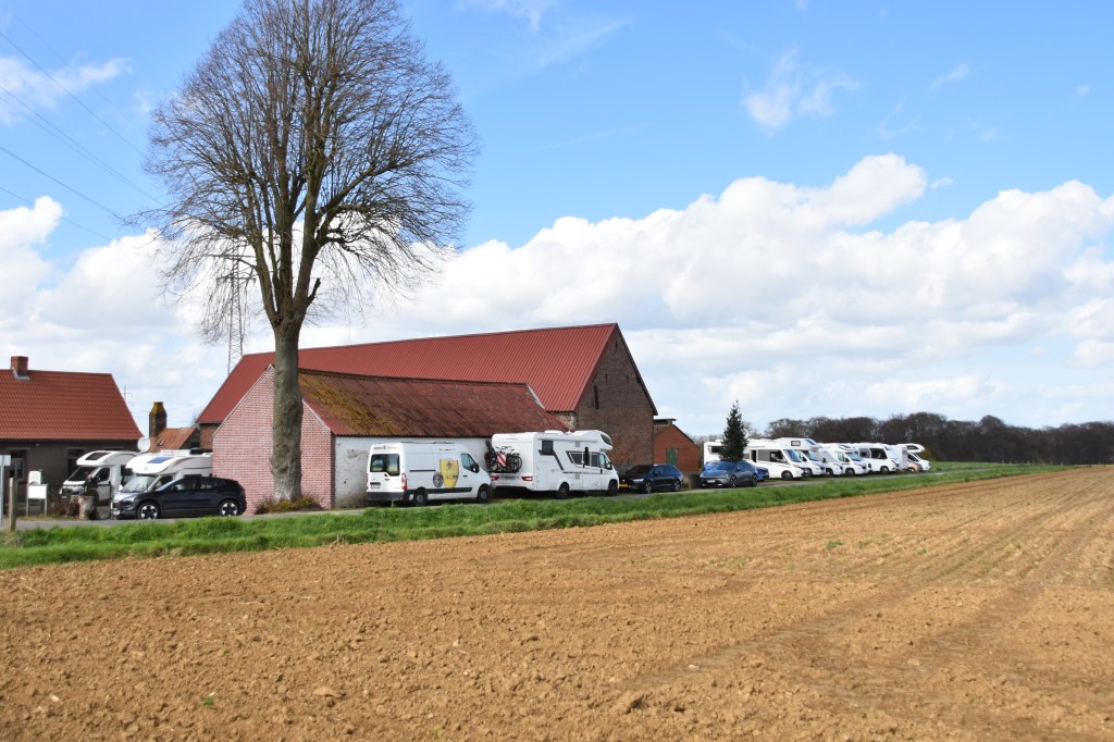 The day before the race I decided to take a hike a few km down to Ronse along some very small side roads to get some essentials from Lidls, and partway along I realized that it was going to be a challenge to walk back all uphill with a full backpack. I did get my purchases in Lidls, then asked the cashier where I might get a taxi from. She asked if I had a smart-phone and when I said no – I had no phone at all – everyone in line looked very surprised and a bit bug-eyed. Realizing that I was going to be out of luck I turned around and said quite loudly ‘I will pay anyone to take me 4 km to the N425’. The couple right behind me in the line said they would be happy to take me and we all went out to their small two-door car and climbed in. They had to make an extra stop at Aldi’s then we were on our way.