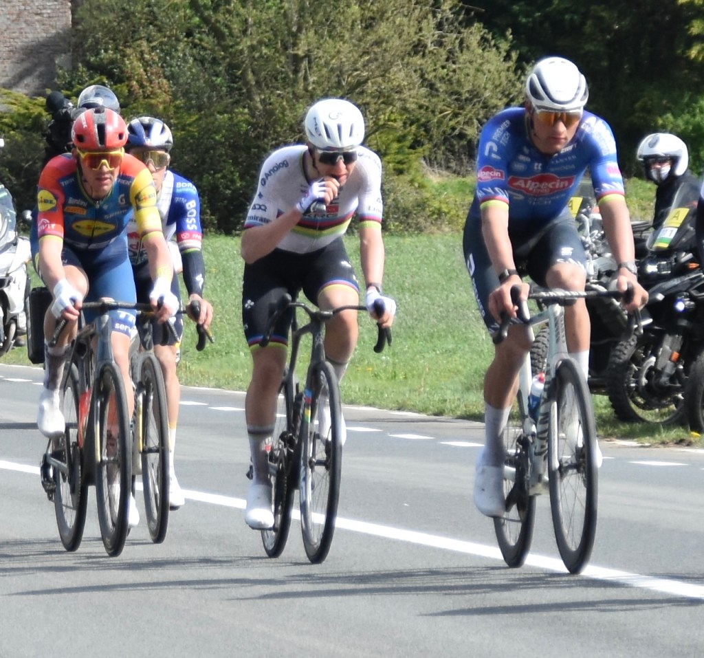 The last time past us were – guess who in the lead?? Pogacar and van der Poel, with Evenepoel not too far behind.